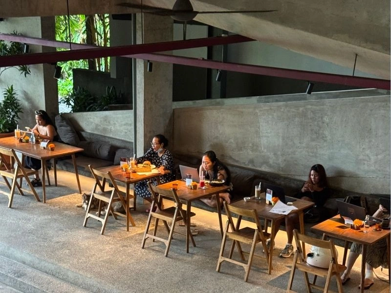 요즘 짱구에서 가장 힙한 노마드들은 다 여기 모여 있는 느낌이랄까요? 알케미 우붓 요가 샬라의 대나무 DNA를 그대로 이식한 듯한 디자인이 인상적이에요. 실내는 전좌석 에어컨이라 아주 쾌적하지만, 전 개인적으로 오후 2시쯤 야외 자리에 앉는 걸 더 좋아해요. 한낮의 열기가 살짝 꺾이면서 야외의 푸릇한 감성이 온몸으로 느껴질 때 발리에서 작업하고 있는게 온몸으로 느껴지거든요.
